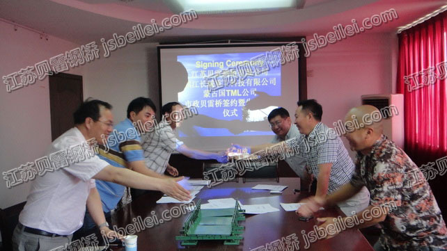 2013年7月9日,我公司聯(lián)合鎮(zhèn)江長城重工與蒙古國TML公司簽訂300米特大貝雷鋼橋供貨合同。